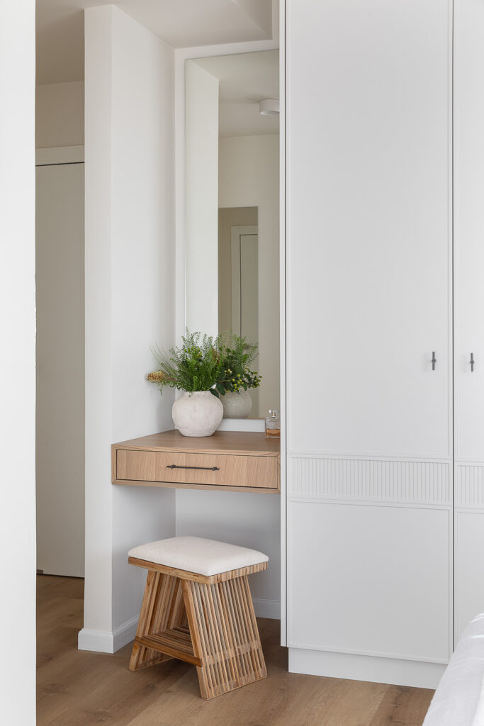 אני מלווה את הפרויקט יד ביד, משלב התכנון, דרך נגרות בהתאמה אישית, בחירת חומרים ופרטים, ועד שלב הביצוע — כדי לאפשר תהליך רגוע, מסודר ומדויק.